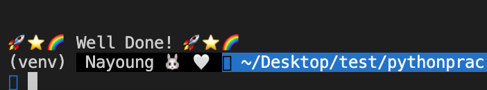 터미널에 (venv) 를 확인하면 해당 프로젝트는 가상환경을 사용해 라이브러리를 관리하고 있음을 알 수 있다.